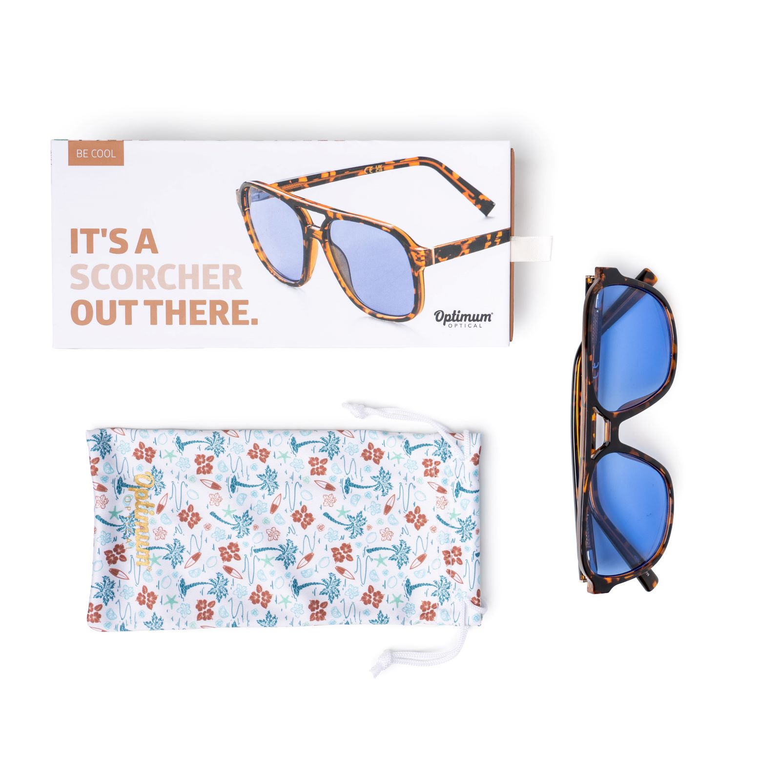A twist on classic aviators, these sunnies feature a modern tortoise print with fresh blue lenses.