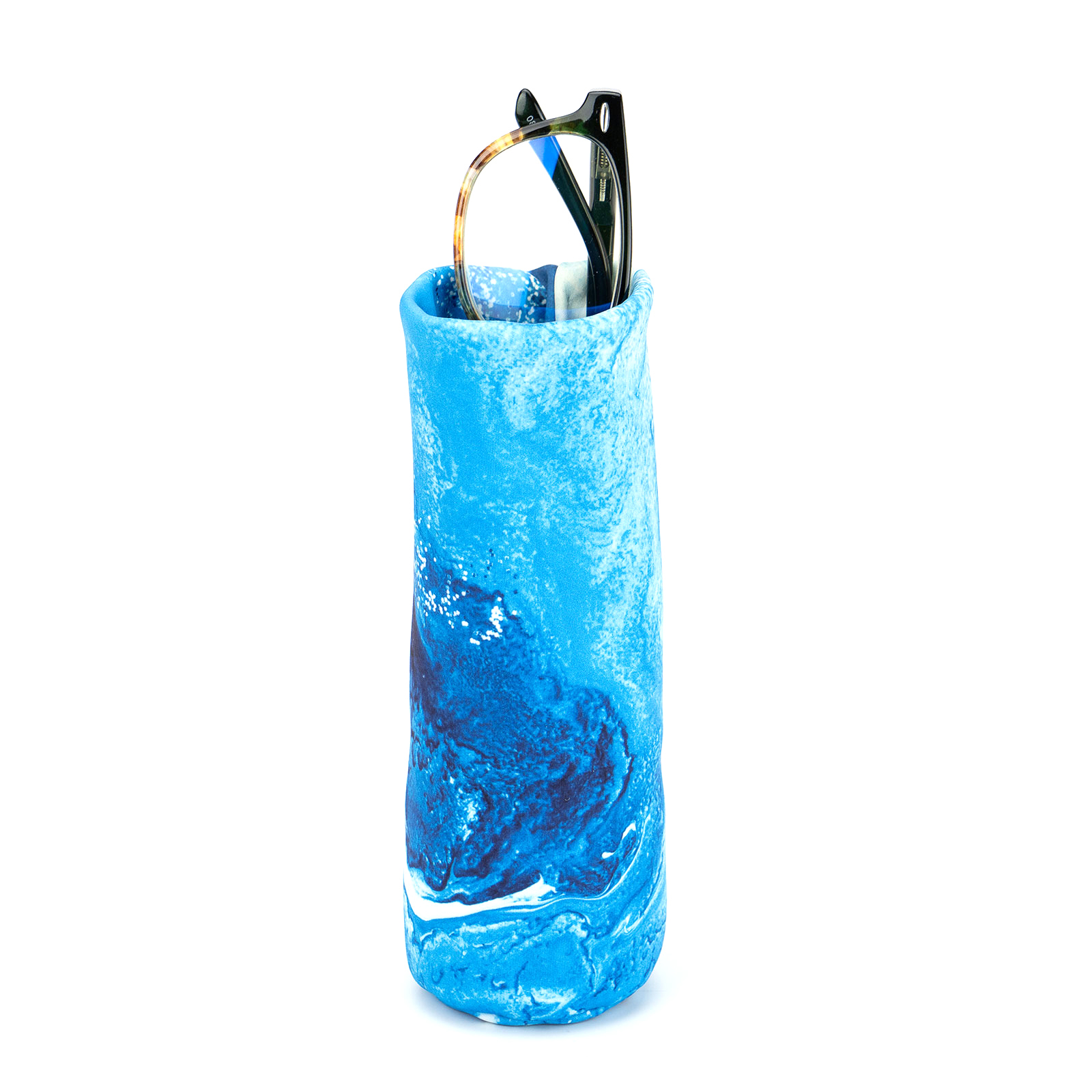 This soft sleeve is a safe space to store your glasses, readers or blue light blockers. Microfiber material doubles as a spot cleaning cloth while a sand-filled base keeps your glasses upright. Perfect for your desk, nightstand or car.